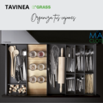 Cubertero Tavinea de Grass, organizador para cajones de cocina diseñado para mantener cubiertos y utensilios ordenados dentro del cajón. Su diseño modular permite aprovechar mejor el espacio interior del mueble.