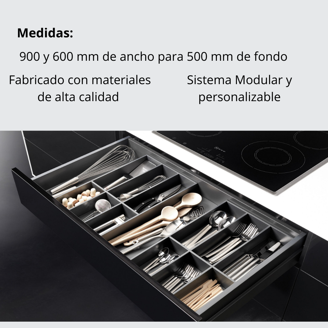 - Sistema modular: permite crear distintos compartimentos según el tamaño del cajón.